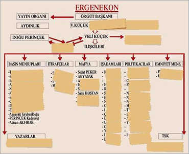 MİT´in 2003 tarihli Ergenekon şemasını 2008´de alan Savcı Öz birçok ismi sansürleyerek iddianameye koymuştu